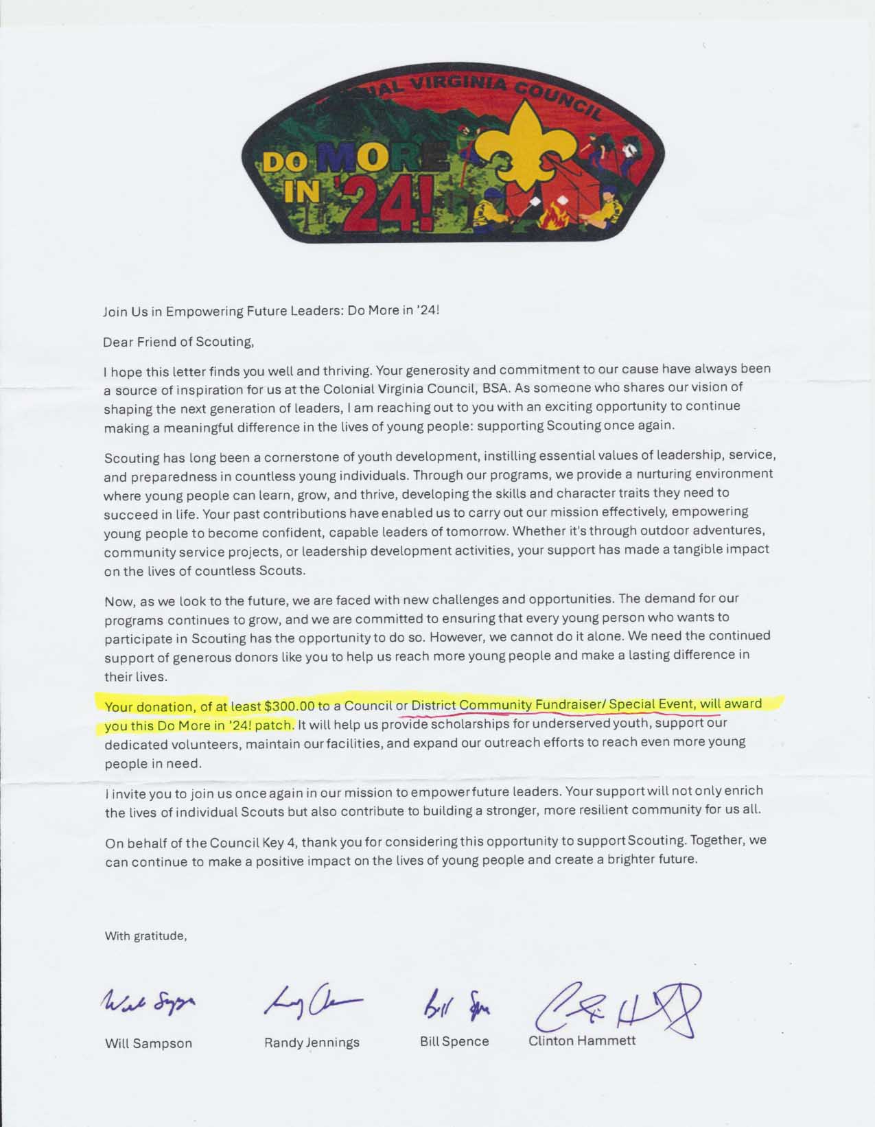 2023 Friends of Scouting, $300 donation