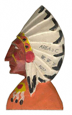 Camp Powhatan (only item issued) Hand carved and painted slide by Ed Choby of Pittsburgh. Each unique and stamped with Choby's name. |