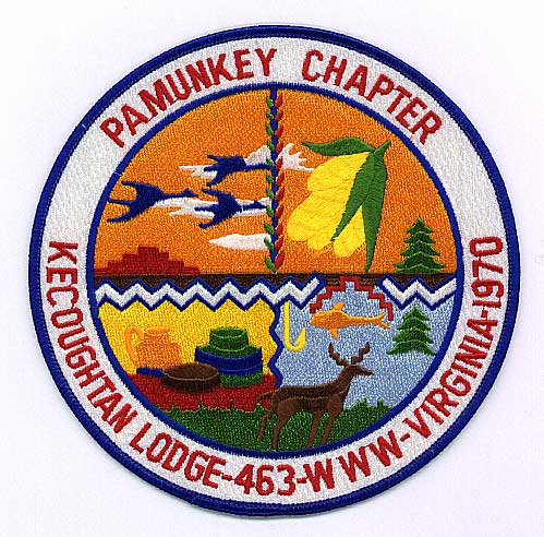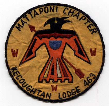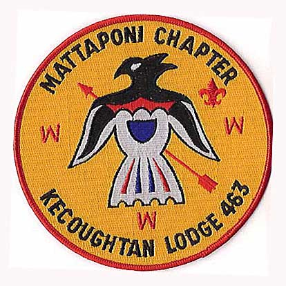 Kecoughtan Lodge's chapters (Kiskiack, Mattaponi, Pamunkey, and Piankatank) as well as the Council Camp (Chickahominy) were named for other Indian tribes which were also members of the Powhatan Confederacy and indigenous to the local region. Prior to 1973 Mattaponi Chapter (which served Northern Star District) was named Lowaneu Allanque, which translates to "Northern Star." Mattaponi Chapter which served Colonial District covered York County. Wendamen Chapter served Gloucester and Mathews counties. In April of 1988 Mattaponi Chapter was split to form a new Chapter. Mattaponi Chapter covered the City of Poquoson and York County, and the new Piankatank Chapter covered the City of Williamsburg and James City County area. In 1993 Wendamen Chapter became part of Mattaponi Chapter and the name was changed to Wicomico. |